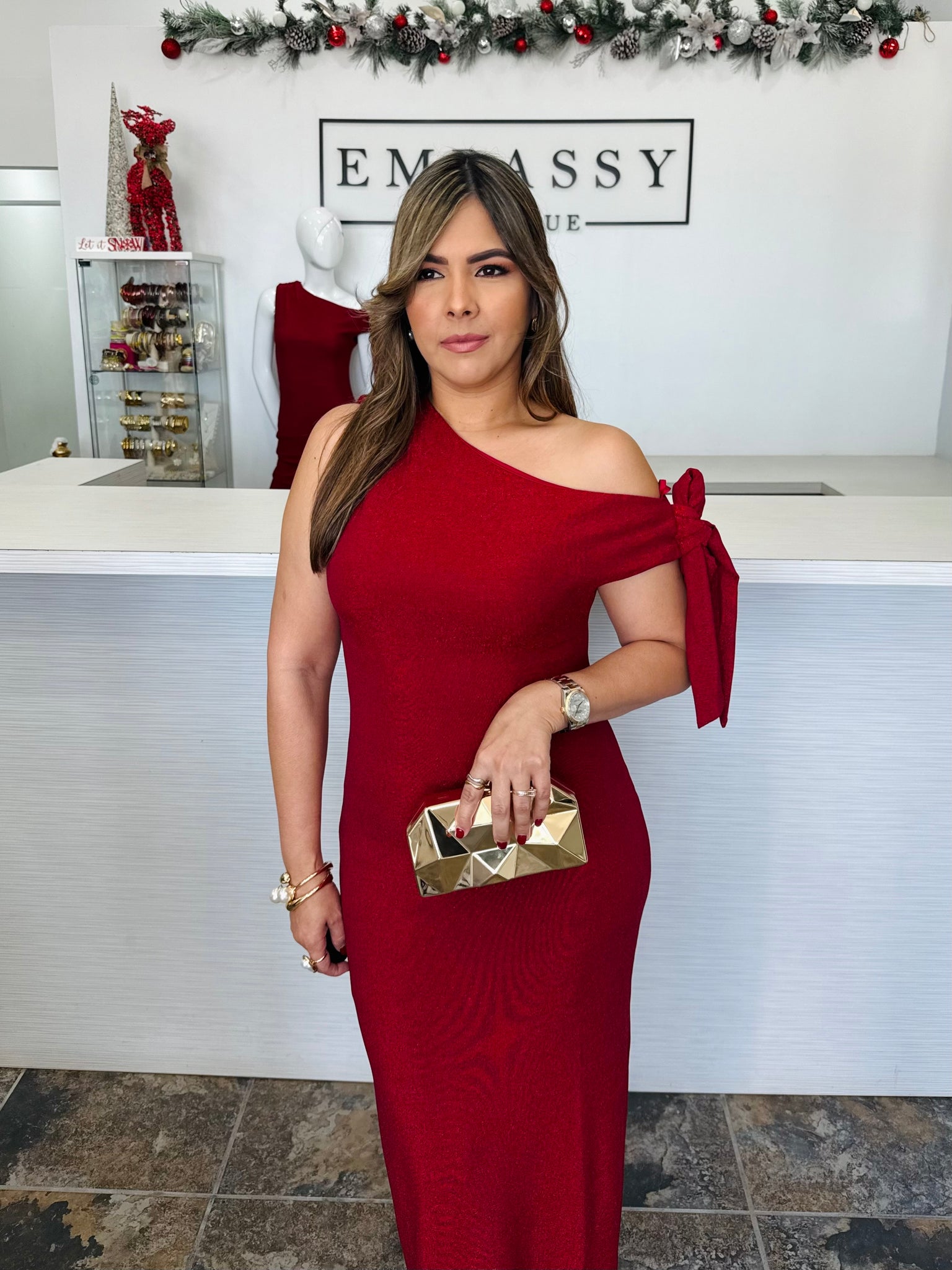 Nuestro Burgundy Allure Dress es expandex, cómodo y súper favorecedor.