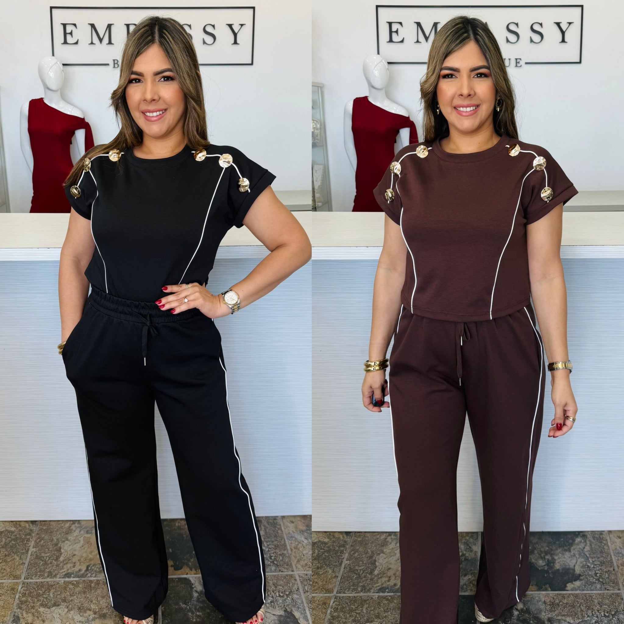 Porque la comodidad también puede ser elegante ✨ Nuestro Golden Button Set combina un estilo sporty chic con detalles sofisticados: botones dorados y líneas blancas que estilizan la figura. Perfecto para lucir cómoda pero bien puesta. Ideal para viajar, trabajar, salir o tu día a día.