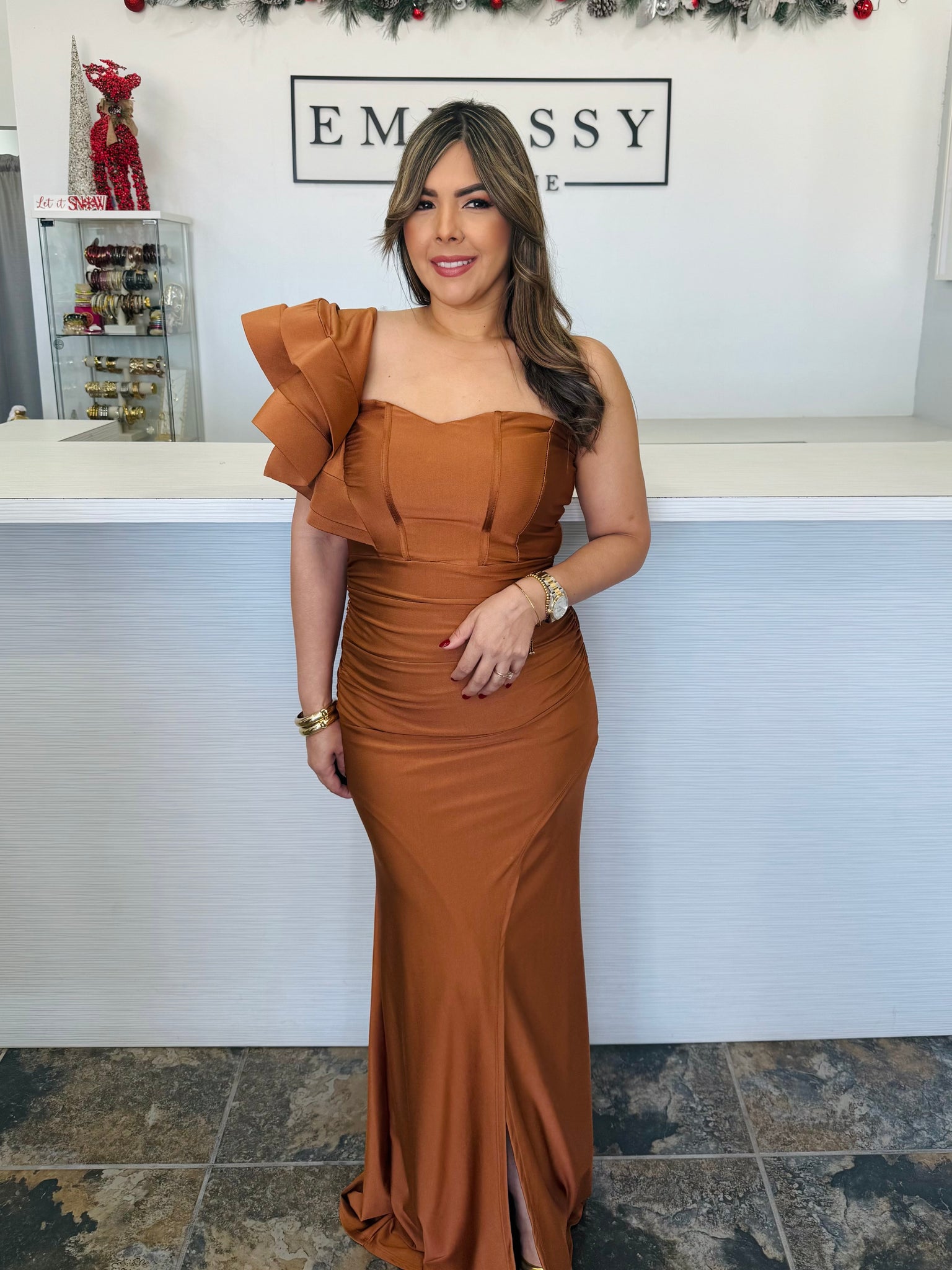 Un gown perfecto para eventos festivos, cenas elegantes, despedidas de año o cualquier ocasión especial donde quieras lucir espectacular.