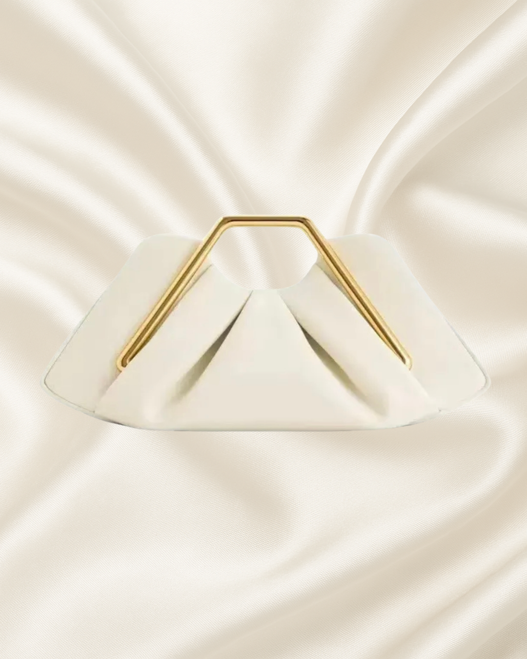 Eleva cualquier look con nuestra Luxe Geometry Clutch, una cartera estructurada de diseño moderno con pliegues elegantes y un sofisticado asa metálica dorada que aporta un toque de lujo minimalista.